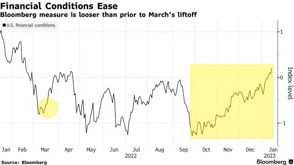 My macro thoughts are usually wrong, but I will write about them anyway. Financial conditions have eased significantly, being looser than in March 2022. The market does not buy that the Fed will stay the course with high interest rates. I don't think the central banks will be very happy about that.