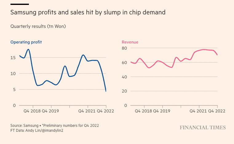 Samsung's profits have taken a large hit among lower chip and smartphone demand. I believe that this will influence both Apple and Nvidia as well.